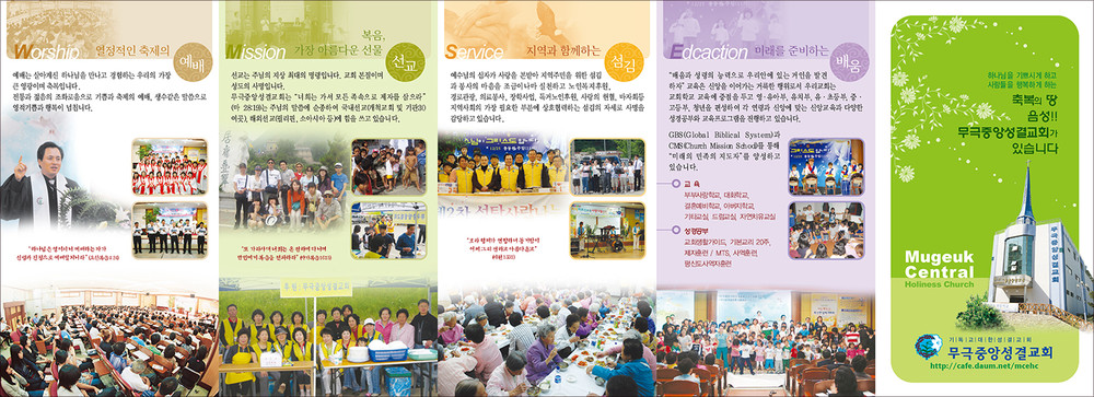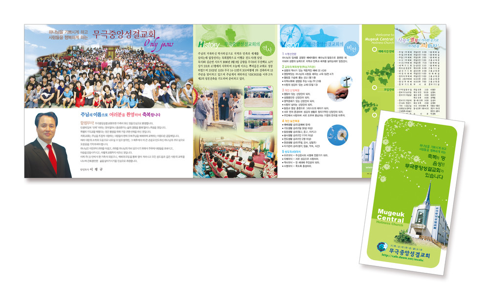 모든 교회안내 디자인은 원하시는 사이즈에 맞추어 제작이 가능합니다. (책자형, 8면, 6면, 4면 등)