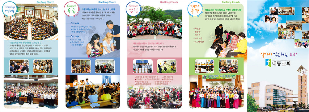 모든 교회안내 디자인은 원하시는 사이즈에 맞추어 제작이 가능합니다. (책자형, 8면, 6면, 4면 등)