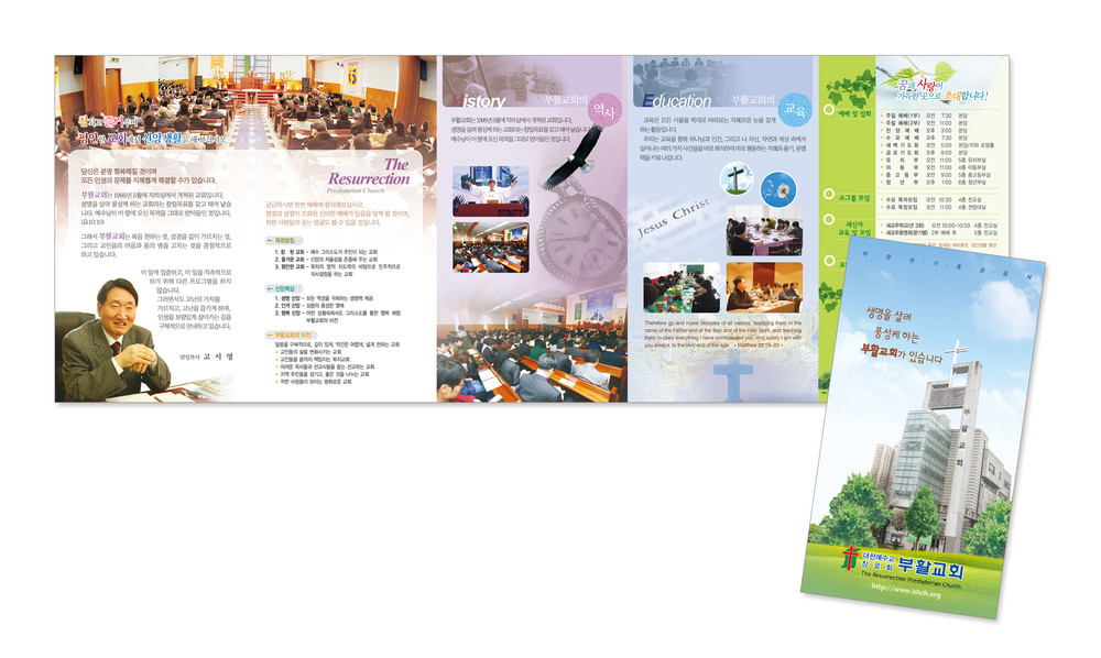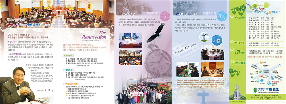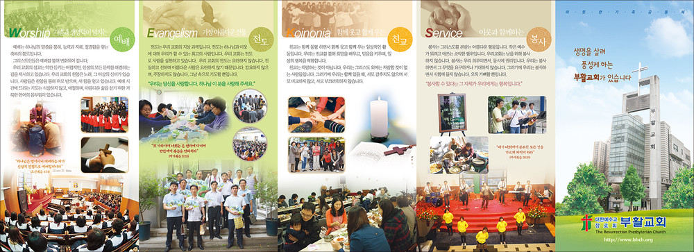 모든 교회안내 디자인은 원하시는 사이즈에 맞추어 제작이 가능합니다. (책자형, 8면, 6면, 4면 등)