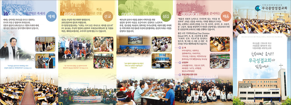 모든 교회안내 디자인은 원하시는 사이즈에 맞추어 제작이 가능합니다. (책자형, 8면, 6면, 4면 등)