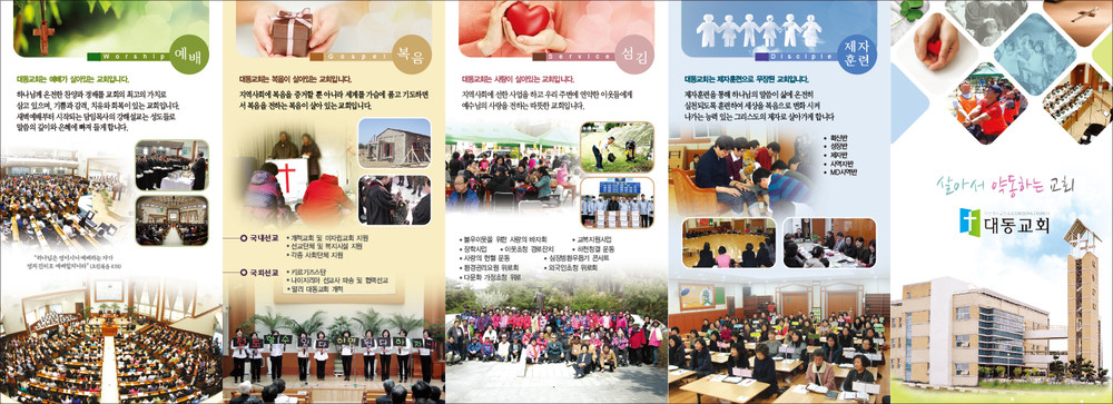 모든 교회안내 디자인은 원하시는 사이즈에 맞추어 제작이 가능합니다. (책자형, 8면, 6면, 4면 등)