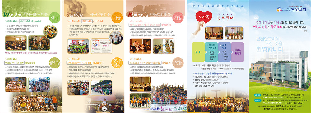 모든 교회안내 디자인은 원하시는 사이즈에 맞추어 제작이 가능합니다. (책자형, 8면, 6면, 4면 등)