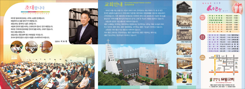 모든 교회안내 디자인은 원하시는 사이즈에 맞추어 제작이 가능합니다. (책자형, 8면, 6면, 4면 등)