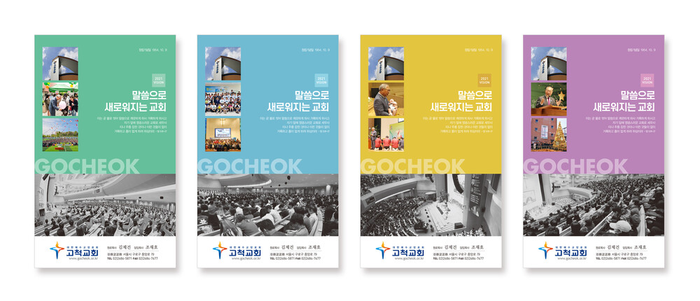 보통 교정을 컴퓨터 모니터나, 칼라 프린터로 출력해서 보시는 경우 모니터(빛의 색 RGB)와 인쇄물(잉크색 CMYK)에는 약간의 차이가 있습니다. 각 교회에서 사용되는 칼라 프린트도 옵셋 인쇄와는 인쇄 방식이 조금 달라 색상의 차이가 있습니다. 특히 종이의 재질(모조지, 아트지, 고급용지)에 의한 색의 차이도 발생할 수 있습니다.