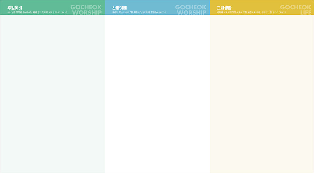 • 그리심에서는 매주인쇄를 진행하지는 않습니다. 주보용지(원지)작업을 도와드리고 있습니다.