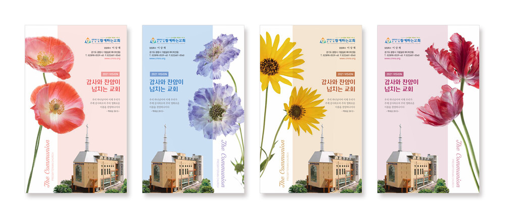 보통 교정을 컴퓨터 모니터나, 칼라 프린터로 출력해서 보시는 경우 모니터(빛의 색 RGB)와 인쇄물(잉크색 CMYK)에는 약간의 차이가 있습니다. 각 교회에서 사용되는 칼라 프린트도 옵셋 인쇄와는 인쇄 방식이 조금 달라 색상의 차이가 있습니다. 특히 종이의 재질(모조지, 아트지, 고급용지)에 의한 색의 차이도 발생할 수 있습니다.