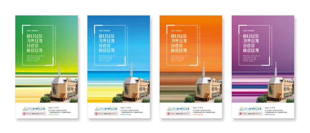 보통 교정을 컴퓨터 모니터나, 칼라 프린터로 출력해서 보시는 경우 모니터(빛의 색 RGB)와 인쇄물(잉크색 CMYK)에는 약간의 차이가 있습니다. 각 교회에서 사용되는 칼라 프린트도 옵셋 인쇄와는 인쇄 방식이 조금 달라 색상의 차이가 있습니다. 특히 종이의 재질(모조지, 아트지, 고급용지)에 의한 색의 차이도 발생할 수 있습니다.