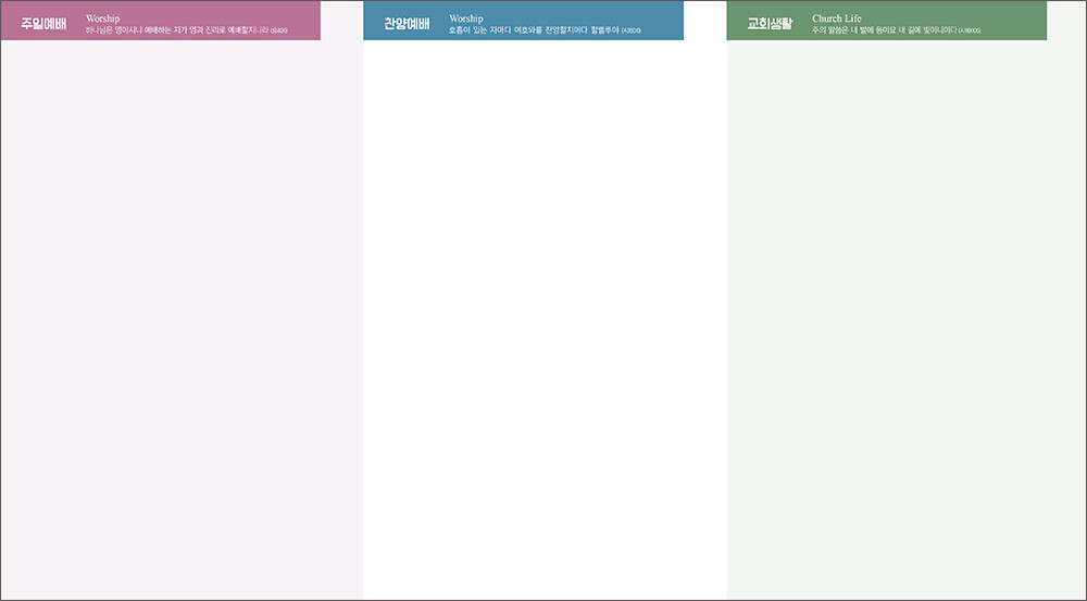 모든 디자인이 완료된 후 현재 교회가 사용중인 한글파일을 보내주시면, 새로운 주보에 맞추어 인쇄가 가능하도록 한글파일을 제작해드리고 있습니다. (한글작업 요청시 약 1-3일 정도의 시간이 소요되오니 참고해 주시기 바랍니다.)