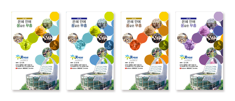 보통 교정을 컴퓨터 모니터나, 칼라 프린터로 출력해서 보시는 경우 모니터(빛의 색 RGB)와 인쇄물(잉크색 CMYK)에는 약간의 차이가 있습니다. 각 교회에서 사용되는 칼라 프린트도 옵셋 인쇄와는 인쇄 방식이 조금 달라 색상의 차이가 있습니다. 특히 종이의 재질(모조지, 아트지, 고급용지)에 의한 색의 차이도 발생할 수 있습니다.