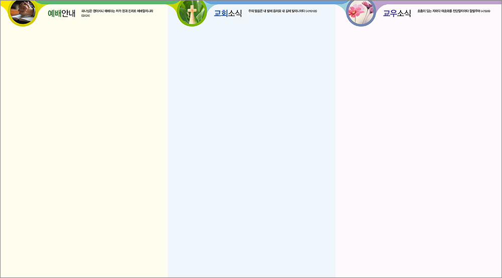 모든 디자인이 완료된 후 현재 교회가 사용중인 한글파일을 보내주시면, 새로운 주보에 맞추어 인쇄가 가능하도록 한글파일을 제작해드리고 있습니다. (한글작업 요청시 약 1-3일 정도의 시간이 소요되오니 참고해 주시기 바랍니다.)