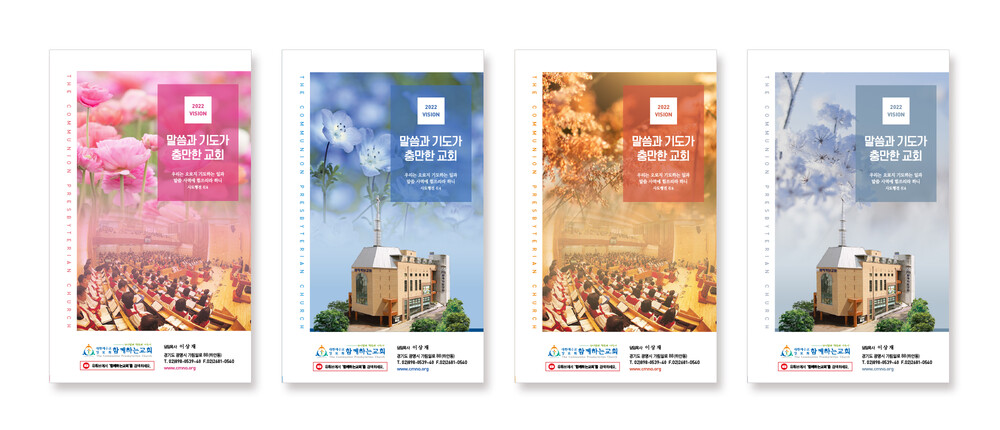 보통 교정을 컴퓨터 모니터나, 칼라 프린터로 출력해서 보시는 경우 모니터(빛의 색 RGB)와 인쇄물(잉크색 CMYK)에는 약간의 차이가 있습니다. 각 교회에서 사용되는 칼라 프린트도 옵셋 인쇄와는 인쇄 방식이 조금 달라 색상의 차이가 있습니다. 특히 종이의 재질(모조지, 아트지, 고급용지)에 의한 색의 차이도 발생할 수 있습니다.