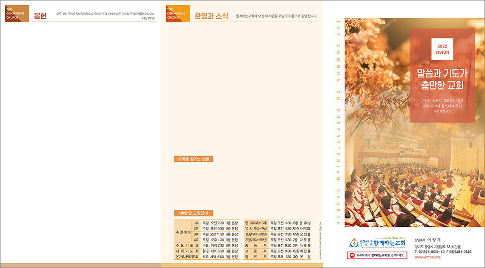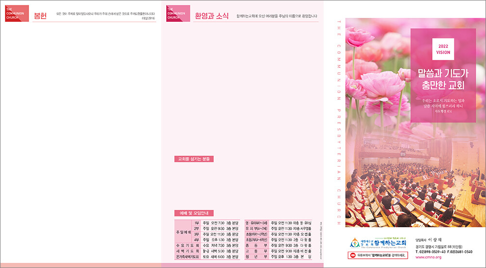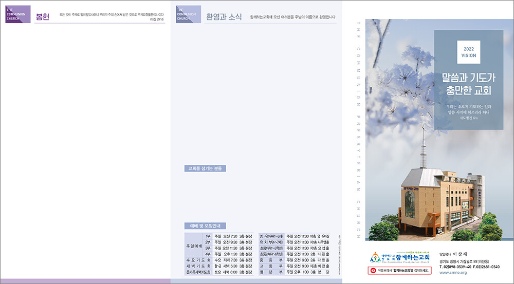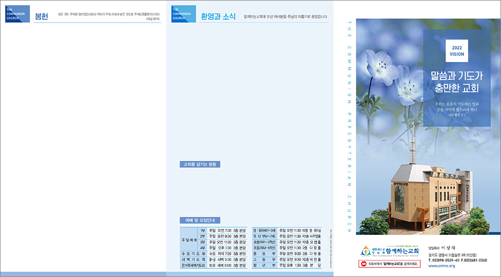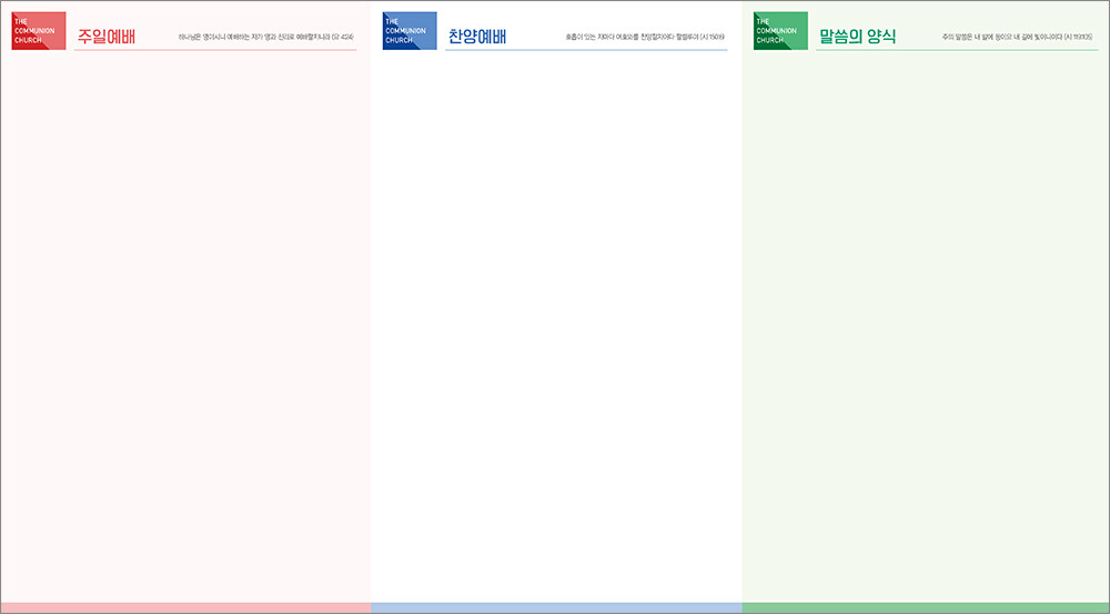 모든 디자인이 완료된 후 현재 교회가 사용중인 한글파일을 보내주시면, 새로운 주보에 맞추어 인쇄가 가능하도록 한글파일을 제작해드리고 있습니다. (한글작업 요청시 약 1-3일 정도의 시간이 소요되오니 참고해 주시기 바랍니다.)