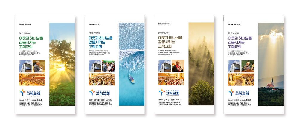 보통 교정을 컴퓨터 모니터나, 칼라 프린터로 출력해서 보시는 경우 모니터(빛의 색 RGB)와 인쇄물(잉크색 CMYK)에는 약간의 차이가 있습니다. 각 교회에서 사용되는 칼라 프린트도 옵셋 인쇄와는 인쇄 방식이 조금 달라 색상의 차이가 있습니다. 특히 종이의 재질(모조지, 아트지, 고급용지)에 의한 색의 차이도 발생할 수 있습니다.