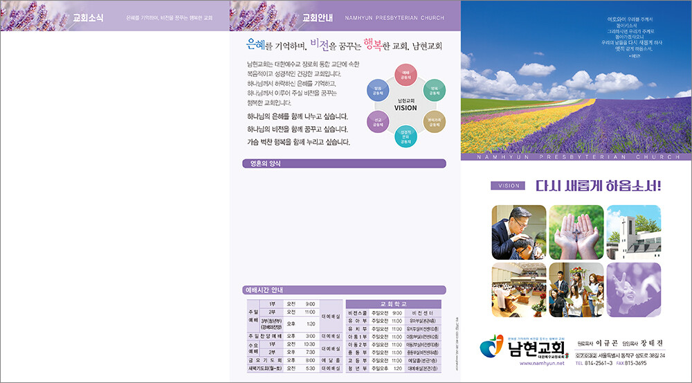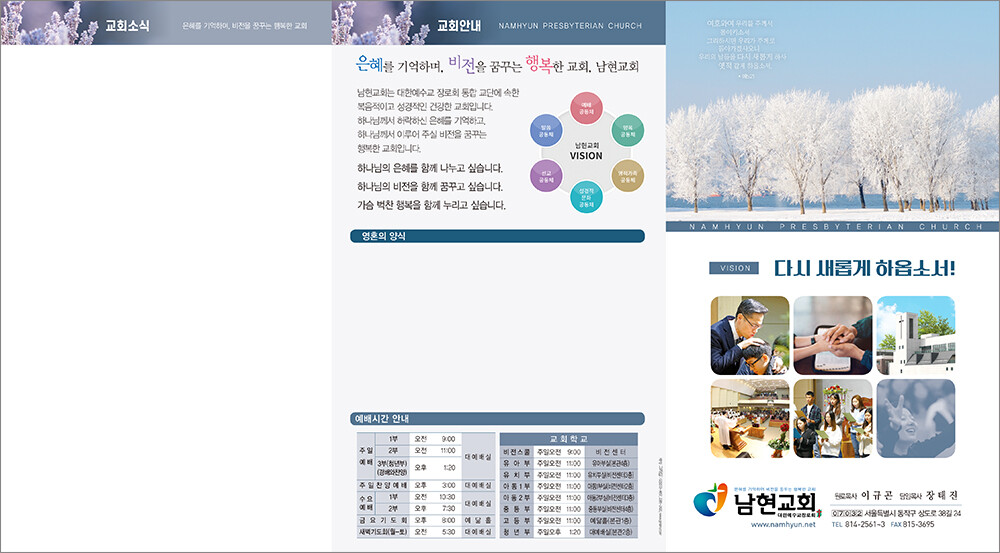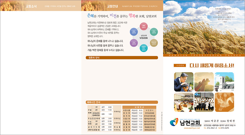 모든 디자인이 완료된 후 현재 교회가 사용중인 한글파일을 보내주시면, 새로운 주보에 맞추어 인쇄가 가능하도록 한글파일을 제작해드리고 있습니다. (한글작업 요청시 약 1-3일 정도의 시간이 소요되오니 참고해 주시기 바랍니다.)