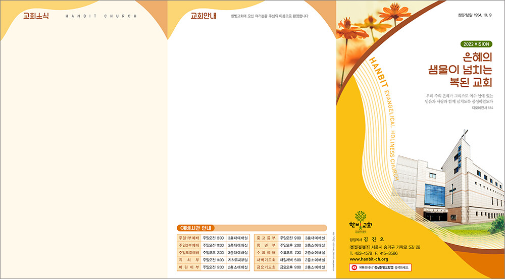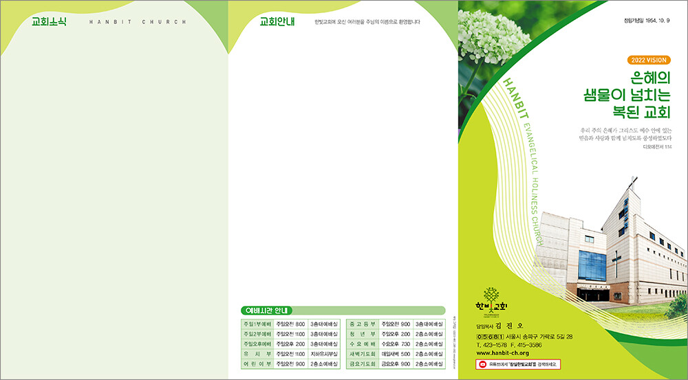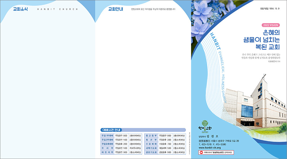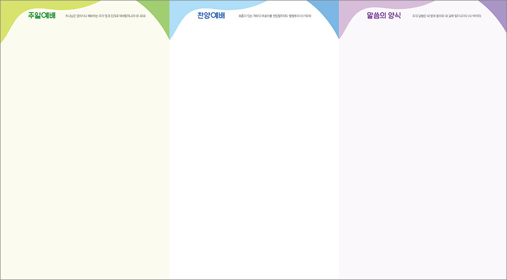 모든 디자인이 완료된 후 현재 교회가 사용중인 한글파일을 보내주시면, 새로운 주보에 맞추어 인쇄가 가능하도록 한글파일을 제작해드리고 있습니다. (한글작업 요청시 약 1-3일 정도의 시간이 소요되오니 참고해 주시기 바랍니다.)