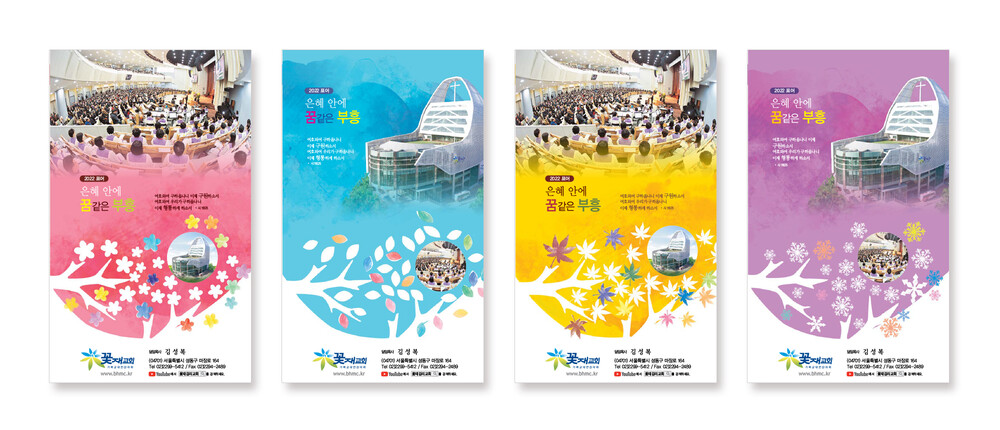 보통 교정을 컴퓨터 모니터나, 칼라 프린터로 출력해서 보시는 경우 모니터(빛의 색 RGB)와 인쇄물(잉크색 CMYK)에는 약간의 차이가 있습니다. 각 교회에서 사용되는 칼라 프린트도 옵셋 인쇄와는 인쇄 방식이 조금 달라 색상의 차이가 있습니다. 특히 종이의 재질(모조지, 아트지, 고급용지)에 의한 색의 차이도 발생할 수 있습니다.
