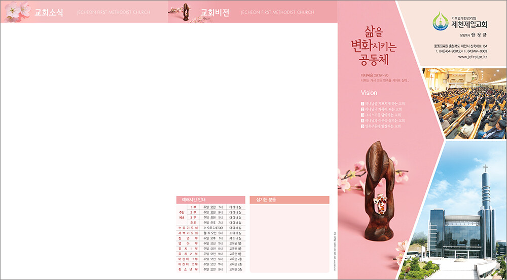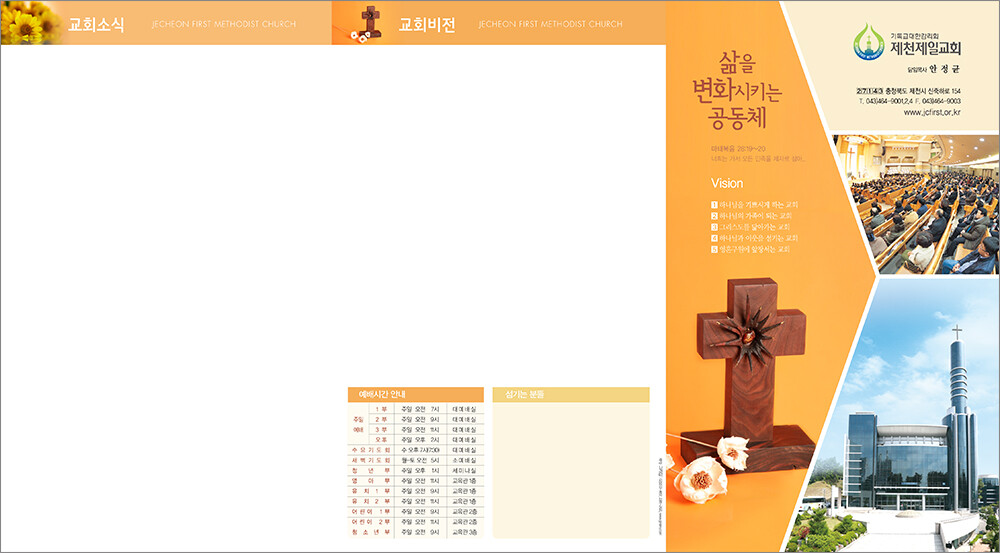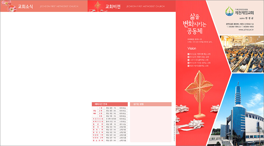 모든 디자인이 완료된 후 현재 교회가 사용중인 한글파일을 보내주시면, 새로운 주보에 맞추어 인쇄가 가능하도록 한글파일을 제작해드리고 있습니다. (한글작업 요청시 약 1-3일 정도의 시간이 소요되오니 참고해 주시기 바랍니다.)