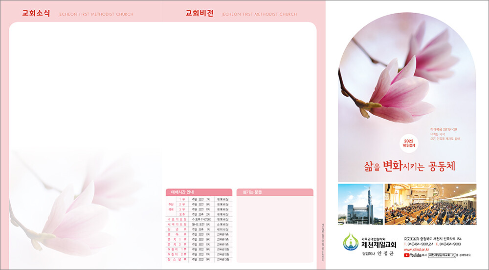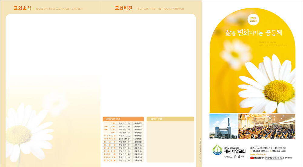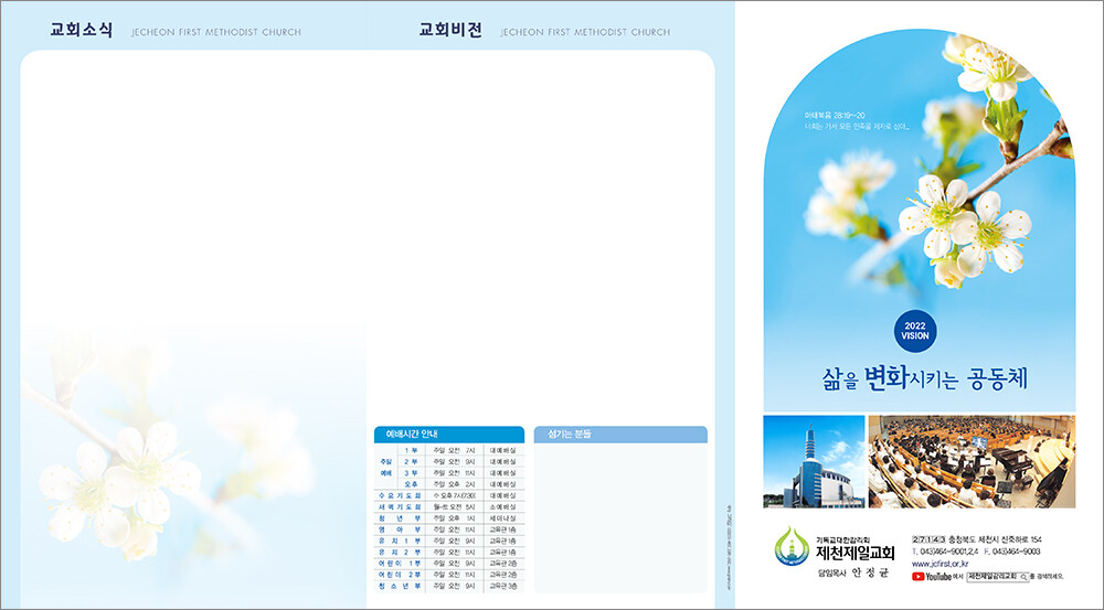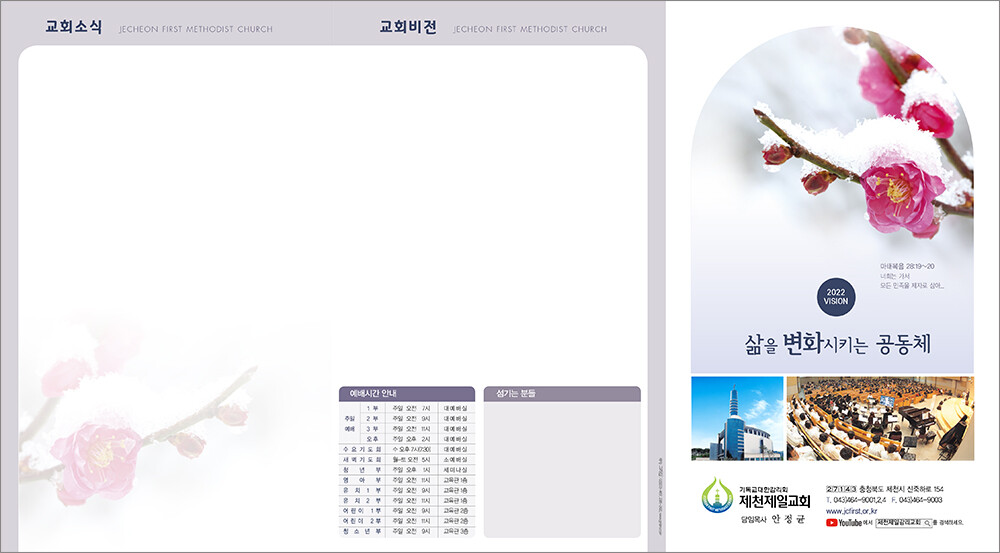 모든 디자인이 완료된 후 현재 교회가 사용중인 한글파일을 보내주시면, 새로운 주보에 맞추어 인쇄가 가능하도록 한글파일을 제작해드리고 있습니다. (한글작업 요청시 약 1-3일 정도의 시간이 소요되오니 참고해 주시기 바랍니다.)