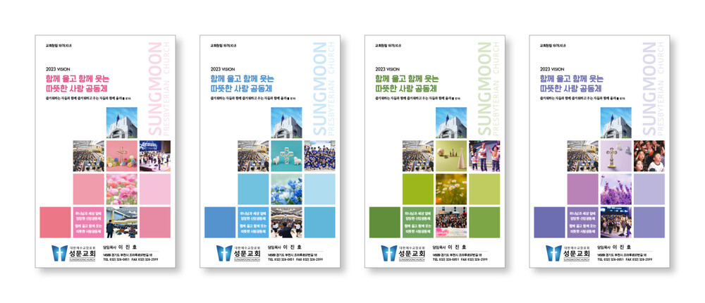 보통 교정을 컴퓨터 모니터나, 칼라 프린터로 출력해서 보시는 경우 모니터(빛의 색 RGB)와 인쇄물(잉크색 CMYK)에는 약간의 차이가 있습니다. 각 교회에서 사용되는 칼라 프린트도 옵셋 인쇄와는 인쇄 방식이 조금 달라 색상의 차이가 있습니다. 특히 종이의 재질(모조지, 아트지, 고급용지)에 의한 색의 차이도 발생할 수 있습니다.