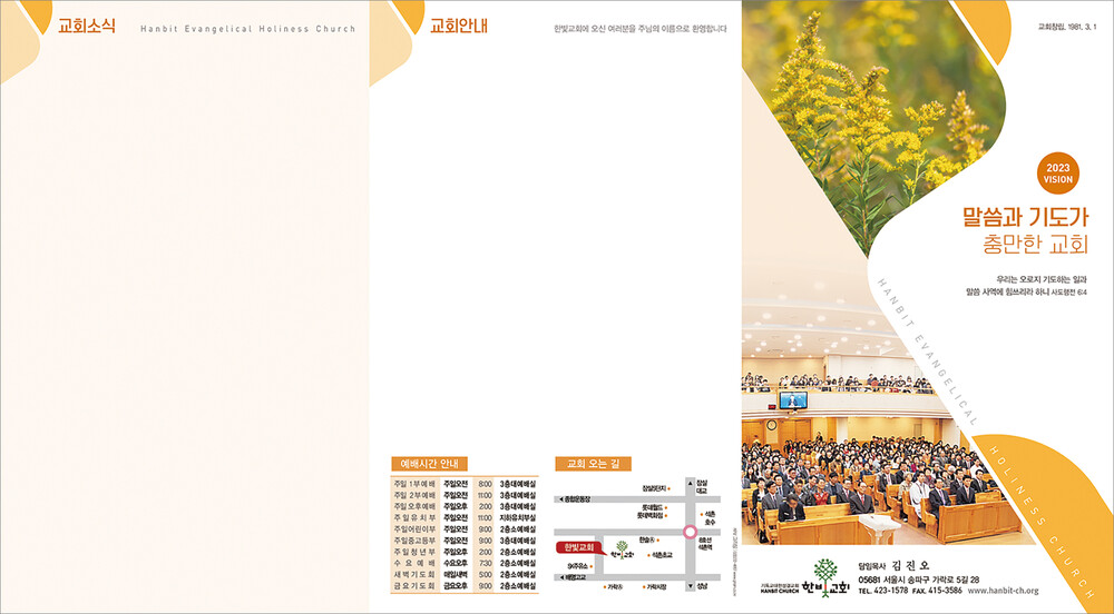 모든 디자인이 완료된 후 현재 교회가 사용중인 한글파일을 보내주시면, 새로운 주보에 맞추어 인쇄가 가능하도록 한글파일을 제작해드리고 있습니다. (한글작업 요청시 약 1-3일 정도의 시간이 소요되오니 참고해 주시기 바랍니다.)
