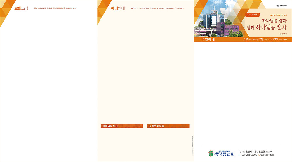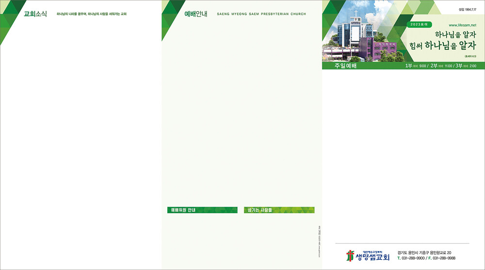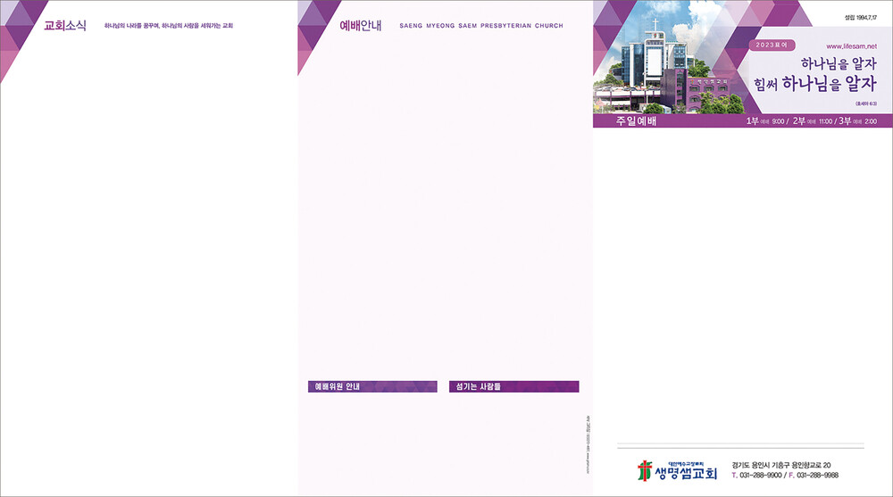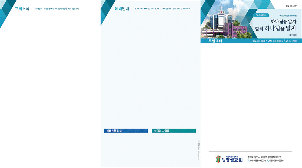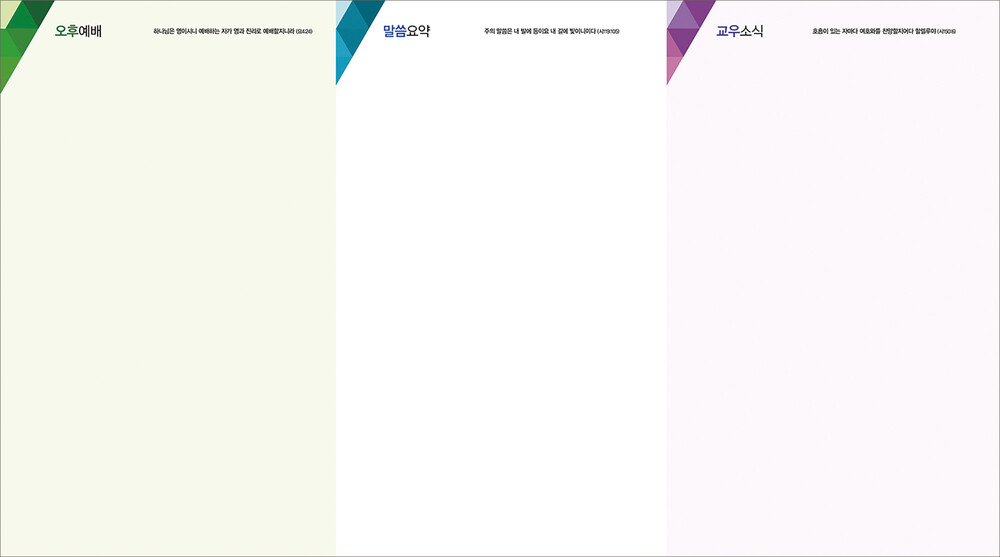 모든 디자인이 완료된 후 현재 교회가 사용중인 한글파일을 보내주시면, 새로운 주보에 맞추어 인쇄가 가능하도록 한글파일을 제작해드리고 있습니다. (한글작업 요청시 약 1-3일 정도의 시간이 소요되오니 참고해 주시기 바랍니다.)