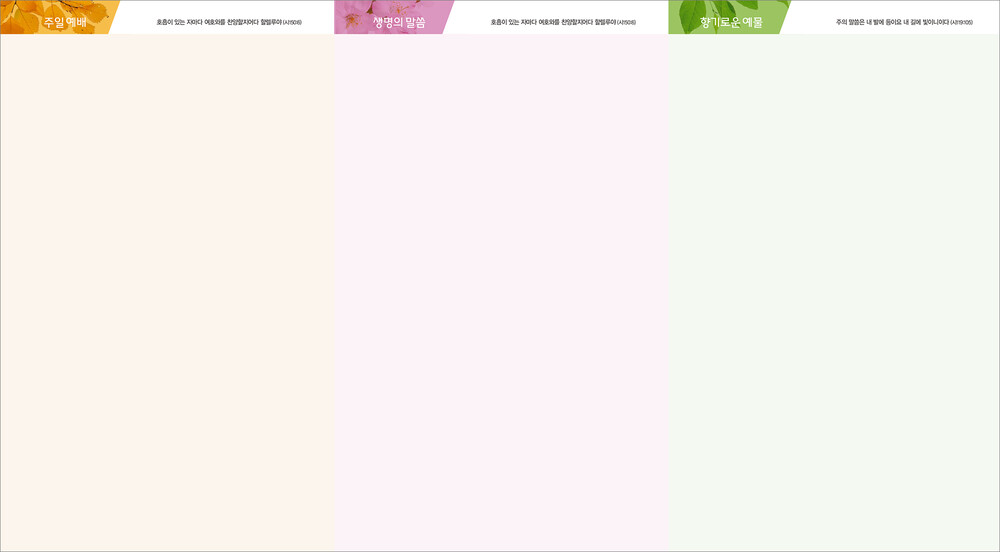 모든 디자인이 완료된 후 현재 교회가 사용중인 한글파일을 보내주시면, 새로운 주보에 맞추어 인쇄가 가능하도록 한글파일을 제작해드리고 있습니다. (한글작업 요청시 약 1-3일 정도의 시간이 소요되오니 참고해 주시기 바랍니다.)