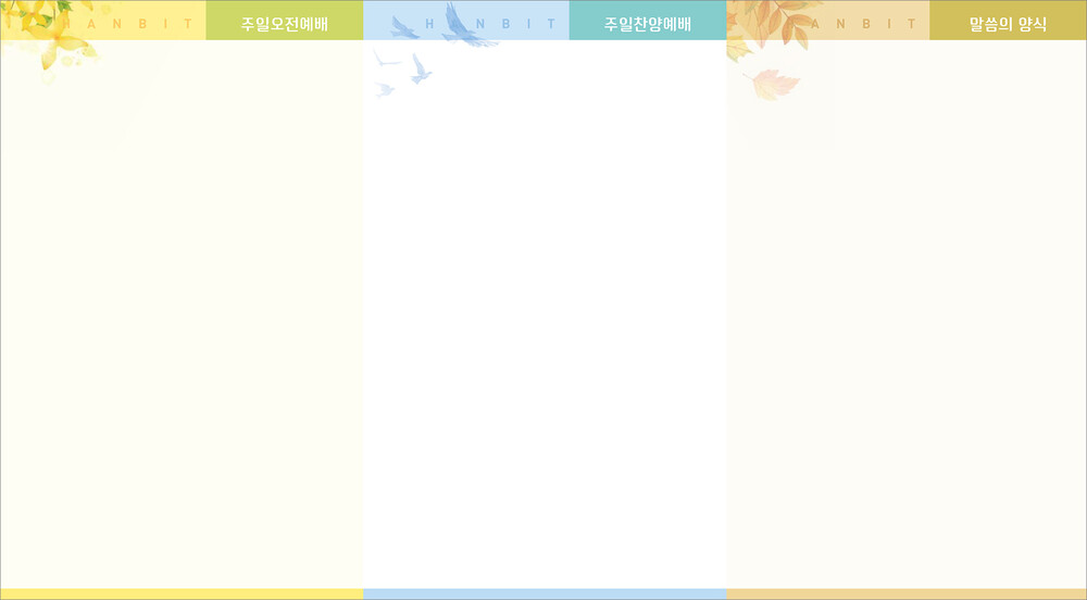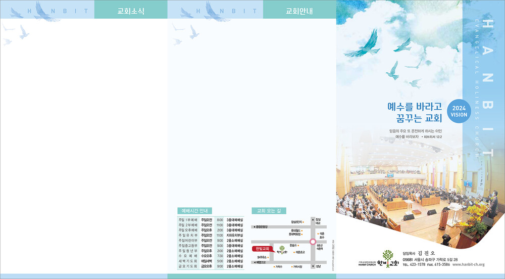 모든 디자인이 완료된 후 현재 교회가 사용중인 한글파일을 보내주시면, 새로운 주보에 맞추어 인쇄가 가능하도록 한글파일을 제작해드리고 있습니다. (한글작업 요청시 약 1-3일 정도의 시간이 소요되오니 참고해 주시기 바랍니다.)