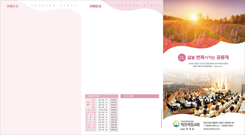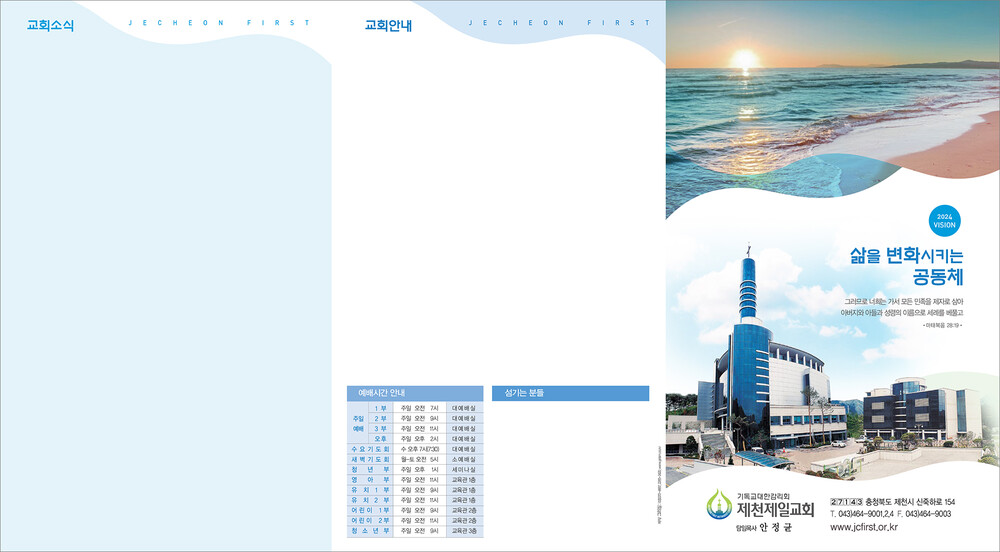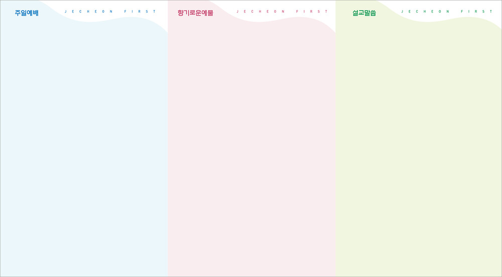 모든 디자인이 완료된 후 현재 교회가 사용중인 한글파일을 보내주시면, 새로운 주보에 맞추어 인쇄가 가능하도록 한글파일을 제작해드리고 있습니다. (한글작업 요청시 약 1-3일 정도의 시간이 소요되오니 참고해 주시기 바랍니다.)