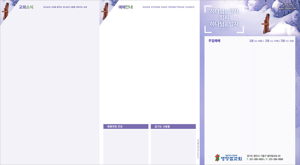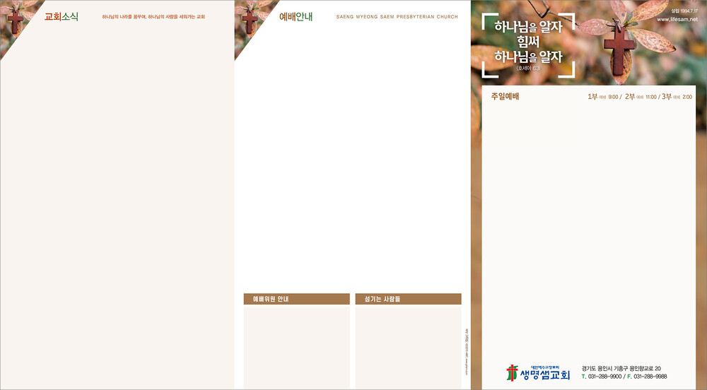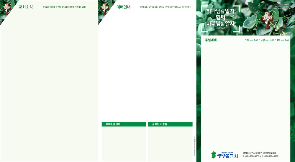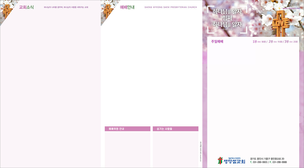 모든 디자인이 완료된 후 현재 교회가 사용중인 한글파일을 보내주시면, 새로운 주보에 맞추어 인쇄가 가능하도록 한글파일을 제작해드리고 있습니다. (한글작업 요청시 약 1-3일 정도의 시간이 소요되오니 참고해 주시기 바랍니다.)