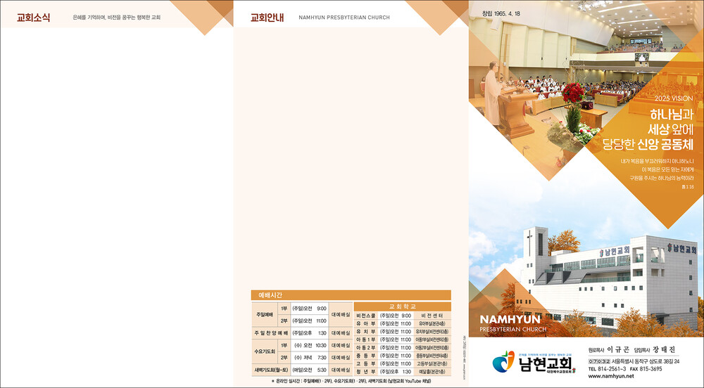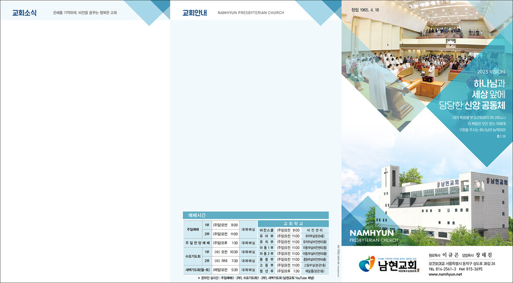 모든 디자인이 완료된 후 현재 교회가 사용중인 한글파일을 보내주시면, 새로운 주보에 맞추어 인쇄가 가능하도록 한글파일을 제작해드리고 있습니다. (한글작업 요청시 약 1-3일 정도의 시간이 소요되오니 참고해 주시기 바랍니다.)