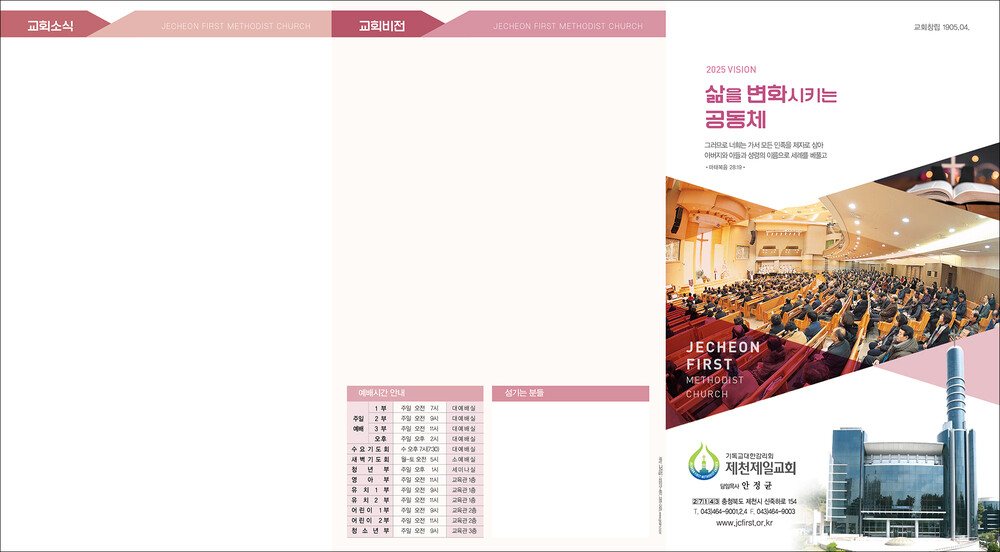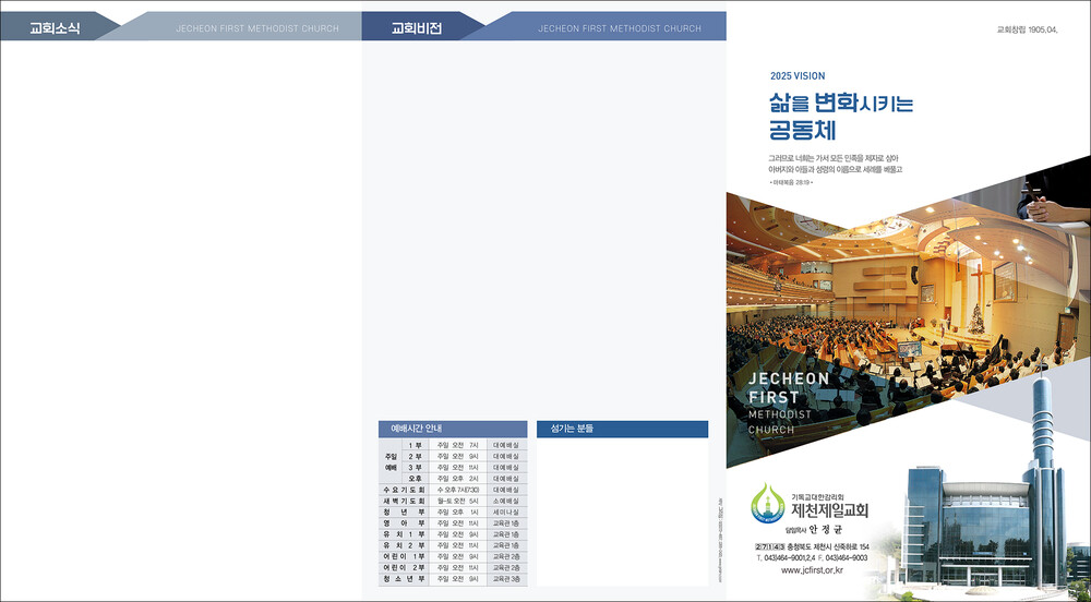 모든 디자인이 완료된 후 현재 교회가 사용중인 한글파일을 보내주시면, 새로운 주보에 맞추어 인쇄가 가능하도록 한글파일을 제작해드리고 있습니다. (한글작업 요청시 약 1-3일 정도의 시간이 소요되오니 참고해 주시기 바랍니다.)