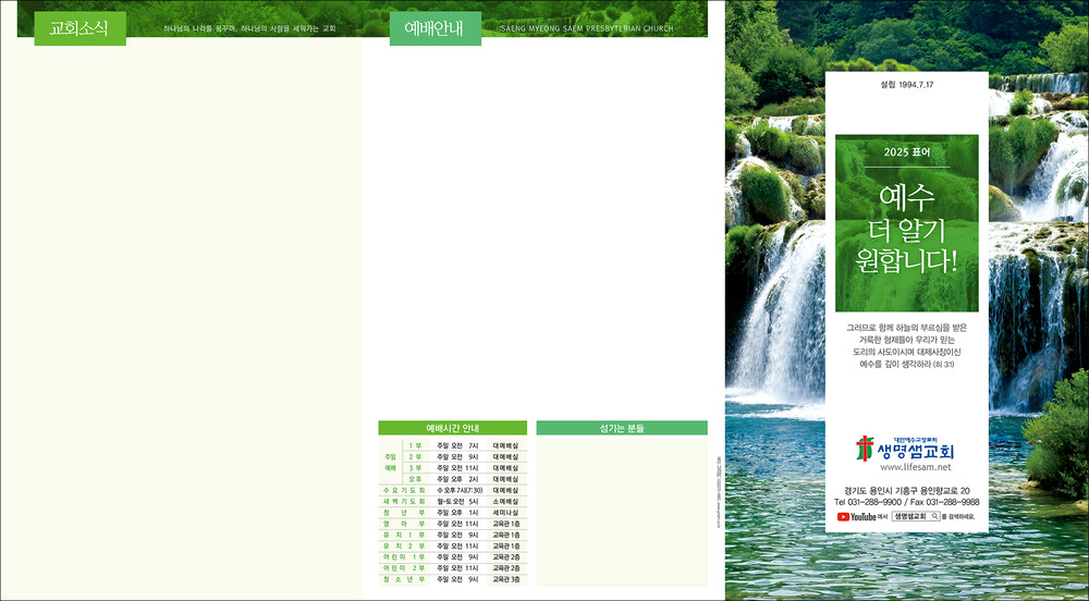 • 그리심에서는 매주인쇄를 진행하지는 않습니다. 주보용지(원지)작업을 도와드리고 있습니다.