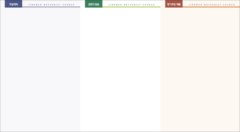 모든 디자인이 완료된 후 현재 교회가 사용중인 한글파일을 보내주시면, 새로운 주보에 맞추어 인쇄가 가능하도록 한글파일을 제작해드리고 있습니다. (한글작업 요청시 약 1-3일 정도의 시간이 소요되오니 참고해 주시기 바랍니다.)