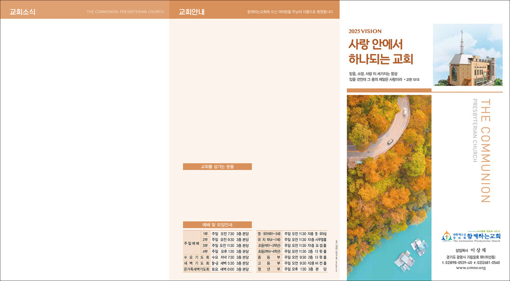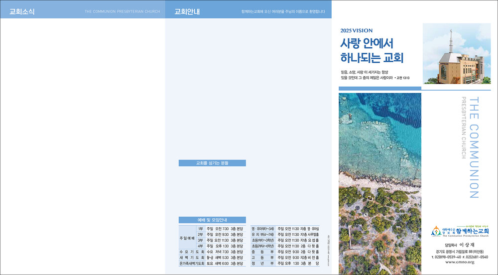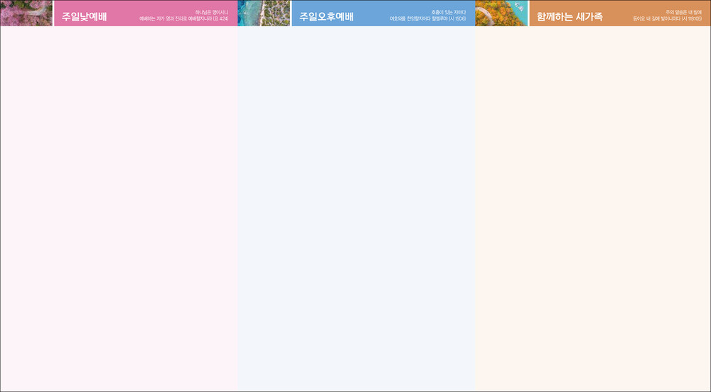 모든 디자인이 완료된 후 현재 교회가 사용중인 한글파일을 보내주시면, 새로운 주보에 맞추어 인쇄가 가능하도록 한글파일을 제작해드리고 있습니다. (한글작업 요청시 약 1-3일 정도의 시간이 소요되오니 참고해 주시기 바랍니다.)