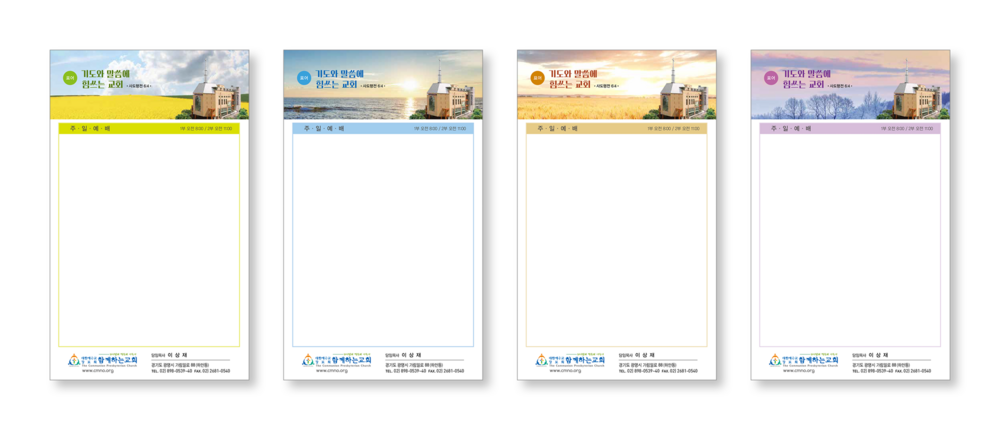 교회가 사용하시는 모든 사이즈로 제작이 가능합니다. (4면, 6면, 8면 등)