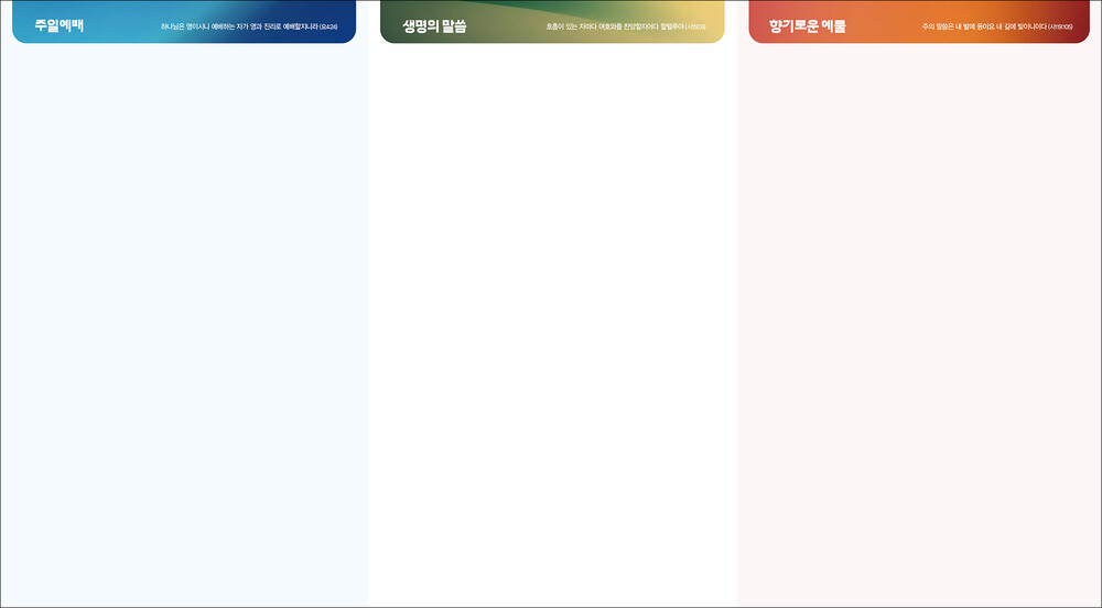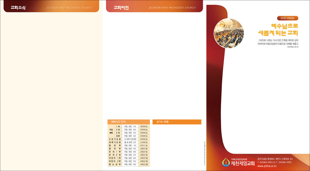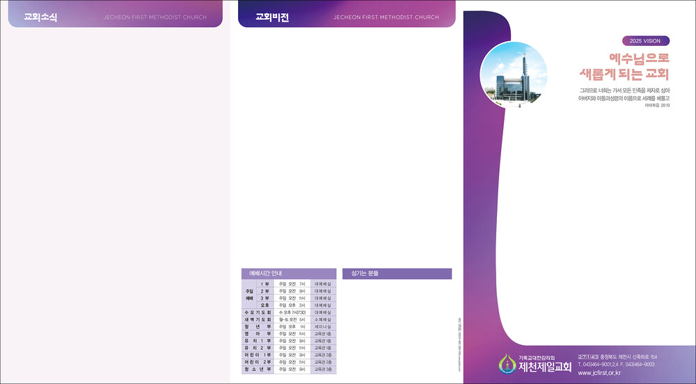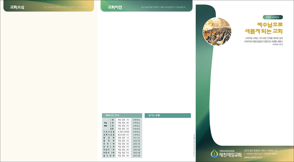 모든 디자인이 완료된 후 현재 교회가 사용중인 한글파일을 보내주시면, 새로운 주보에 맞추어 인쇄가 가능하도록 한글파일을 제작해드리고 있습니다. (한글작업 요청시 약 1-3일 정도의 시간이 소요되오니 참고해 주시기 바랍니다.)