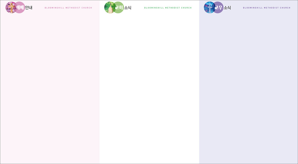 모든 디자인이 완료된 후 현재 교회가 사용중인 한글파일을 보내주시면, 새로운 주보에 맞추어 인쇄가 가능하도록 한글파일을 제작해드리고 있습니다. (한글작업 요청시 약 1-3일 정도의 시간이 소요되오니 참고해 주시기 바랍니다.)