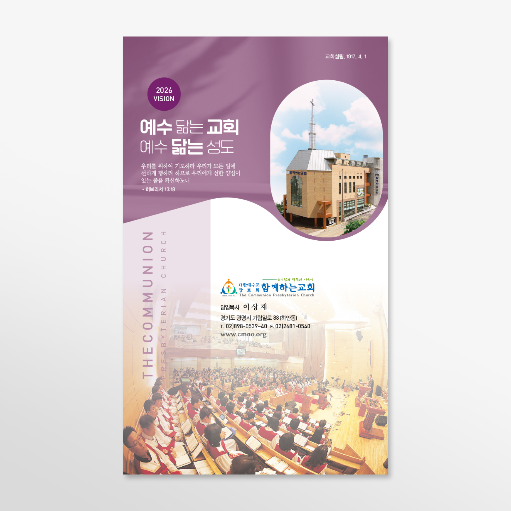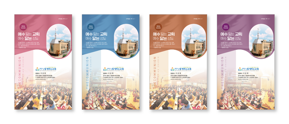 보통 교정을 컴퓨터 모니터나, 칼라 프린터로 출력해서 보시는 경우 모니터(빛의 색 RGB)와 인쇄물(잉크색 CMYK)에는 약간의 차이가 있습니다. 각 교회에서 사용되는 칼라 프린트도 옵셋 인쇄와는 인쇄 방식이 조금 달라 색상의 차이가 있습니다. 특히 종이의 재질(모조지, 아트지, 고급용지)에 의한 색의 차이도 발생할 수 있습니다.