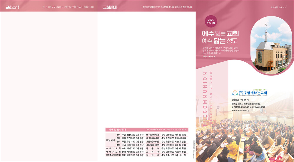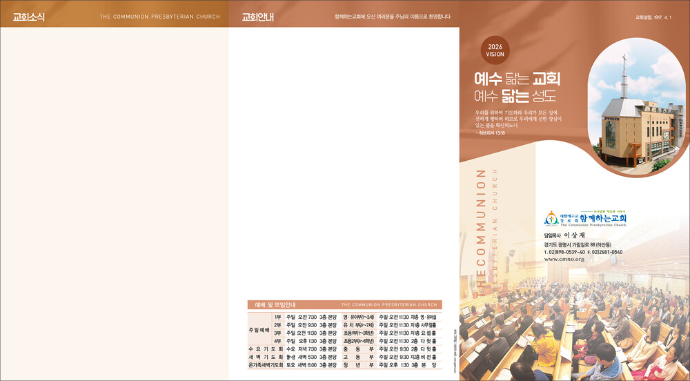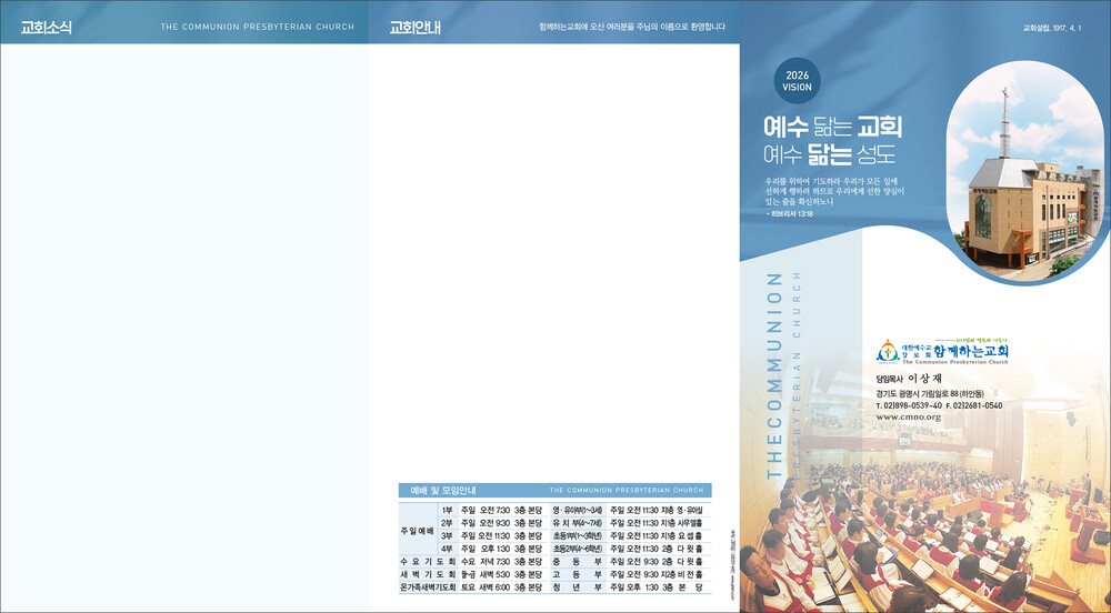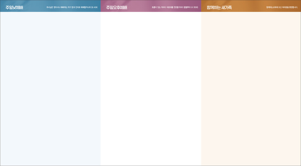 모든 디자인이 완료된 후 현재 교회가 사용중인 한글파일을 보내주시면, 새로운 주보에 맞추어 인쇄가 가능하도록 한글파일을 제작해드리고 있습니다. (한글작업 요청시 약 1-3일 정도의 시간이 소요되오니 참고해 주시기 바랍니다.)
