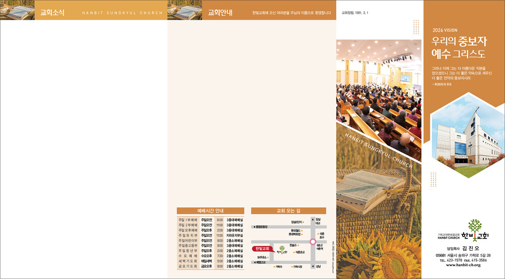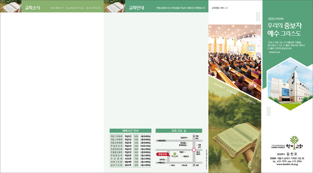 모든 디자인이 완료된 후 현재 교회가 사용중인 한글파일을 보내주시면, 새로운 주보에 맞추어 인쇄가 가능하도록 한글파일을 제작해드리고 있습니다. (한글작업 요청시 약 1-3일 정도의 시간이 소요되오니 참고해 주시기 바랍니다.)