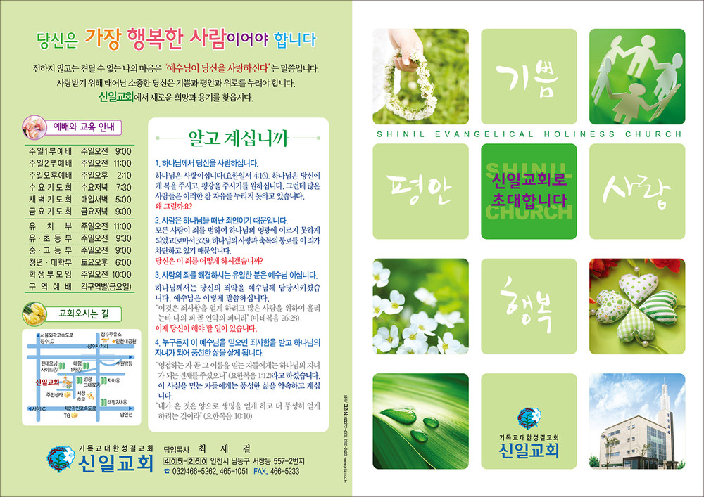 모든 교회안내 디자인은 원하시는 사이즈에 맞추어 제작이 가능합니다. (책자형, 8면, 6면, 4면 등)