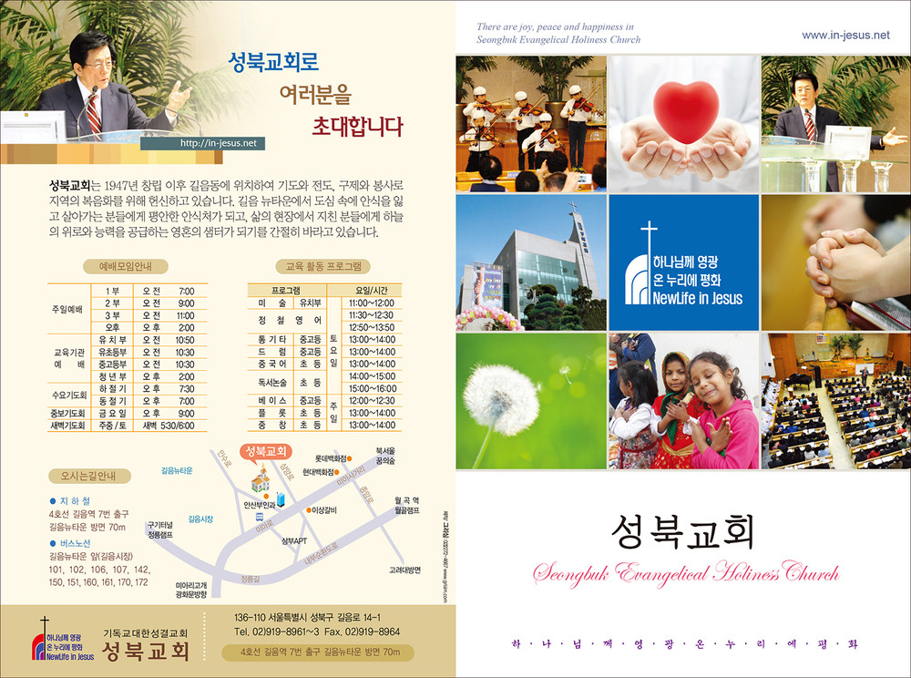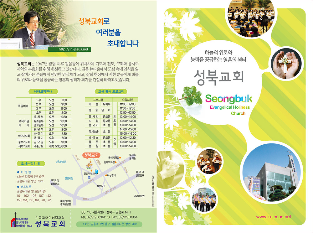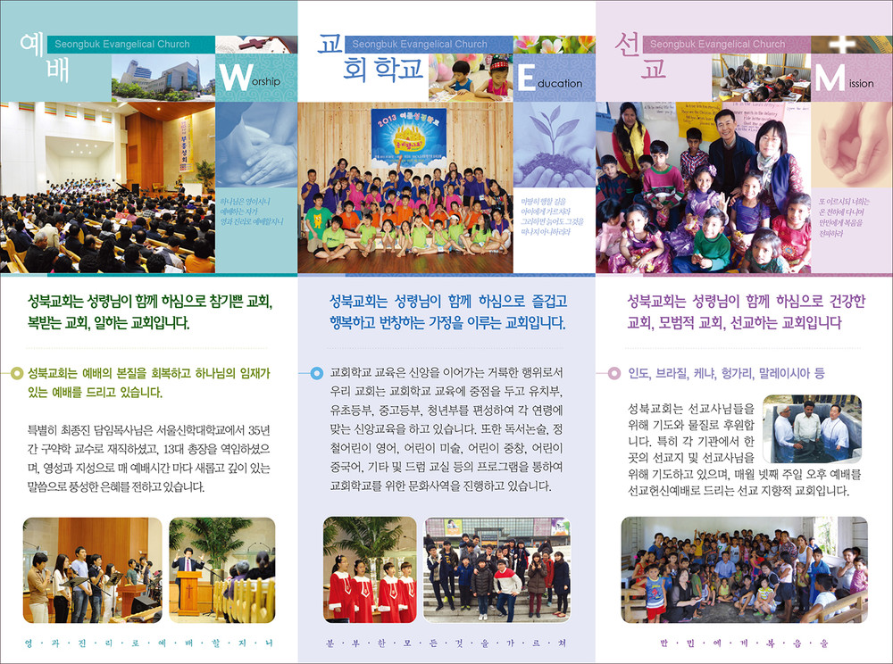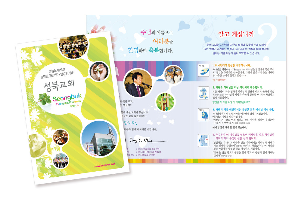 모든 교회안내 디자인은 원하시는 사이즈에 맞추어 제작이 가능합니다. (책자형, 8면, 6면, 4면 등)