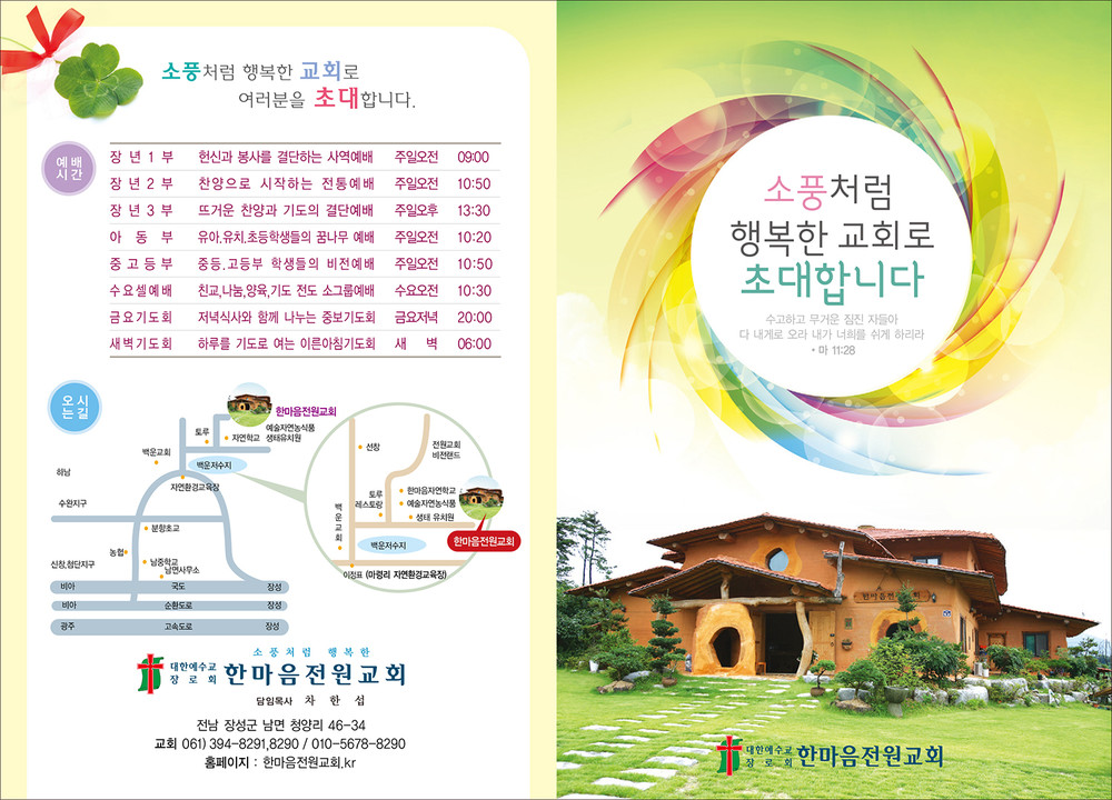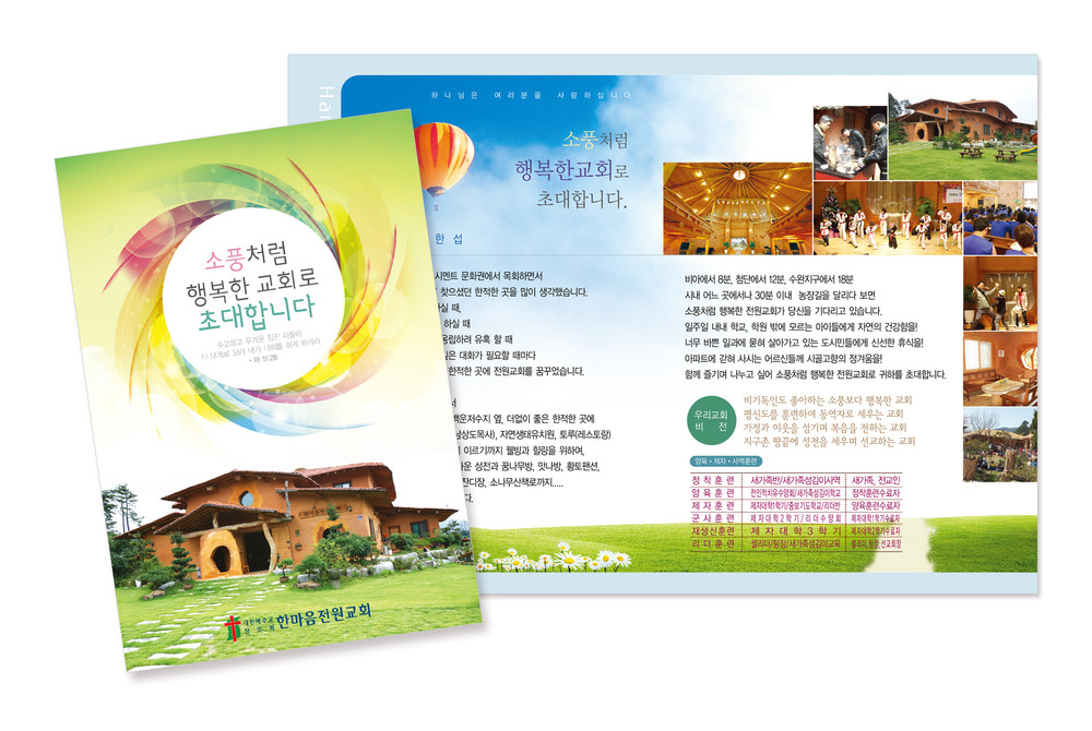 모든 교회안내 디자인은 원하시는 사이즈에 맞추어 제작이 가능합니다. (책자형, 8면, 6면, 4면 등)