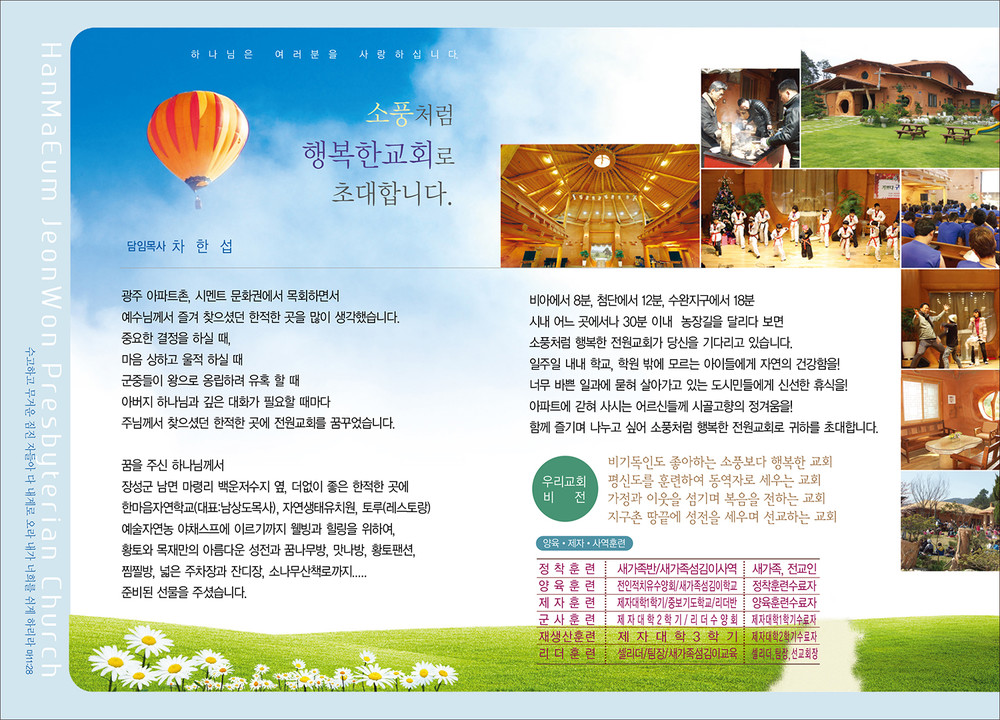• 교회안내 제작시 예배전경, 외부전경등의 사진촬영을 무료로 해 드릴 수 있습니다.(서울, 경기지역)