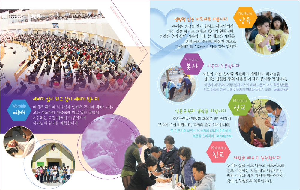 모든 교회안내 디자인은 원하시는 사이즈에 맞추어 제작이 가능합니다. (책자형, 8면, 6면, 4면 등)