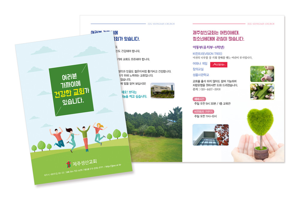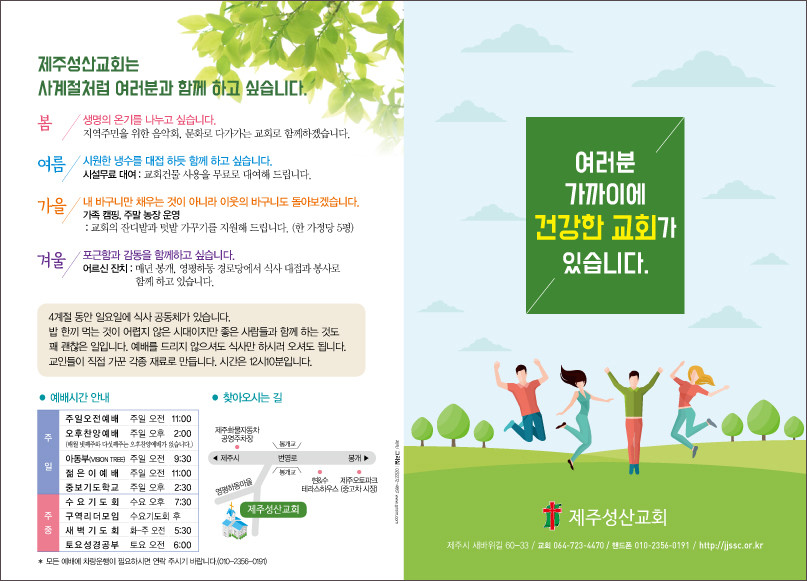 모든 교회안내 디자인은 원하시는 사이즈에 맞추어 제작이 가능합니다. (책자형, 8면, 6면, 4면 등)