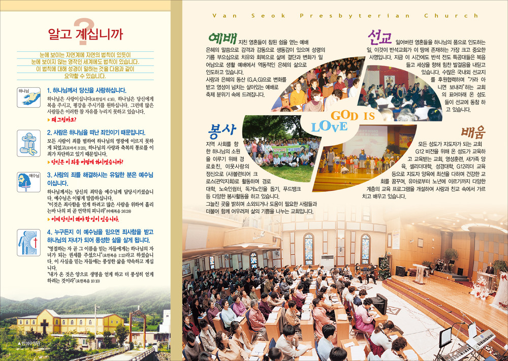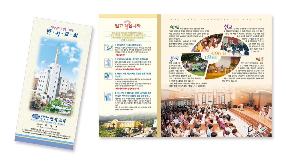 모든 교회안내 디자인은 원하시는 사이즈에 맞추어 제작이 가능합니다. (책자형, 8면, 6면, 4면 등)