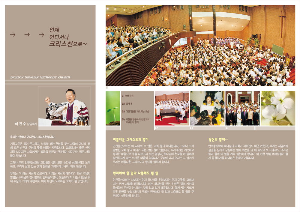 • 교회안내 제작시 예배전경, 외부전경등의 사진촬영을 무료로 해 드릴 수 있습니다.(서울, 경기지역)