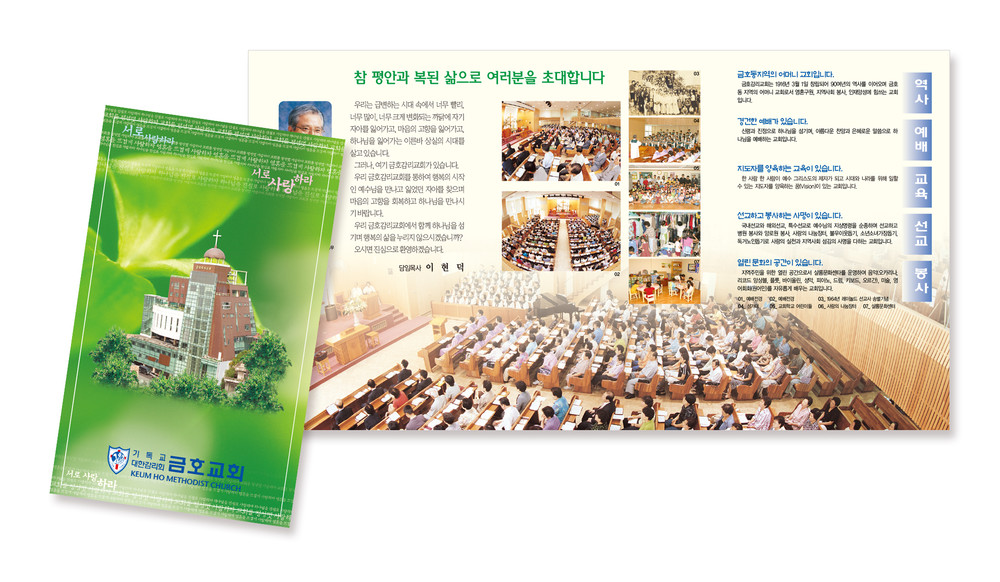 모든 교회안내 디자인은 원하시는 사이즈에 맞추어 제작이 가능합니다. (책자형, 8면, 6면, 4면 등)