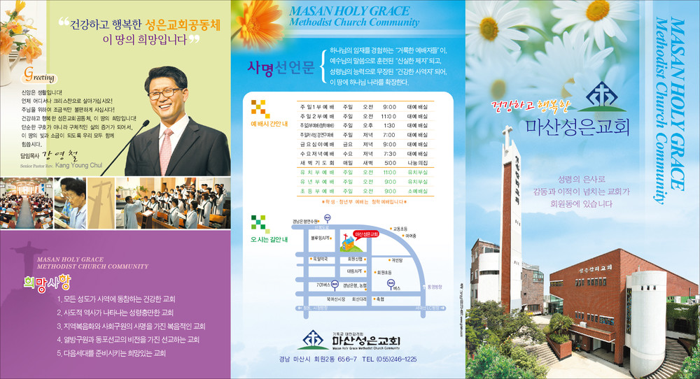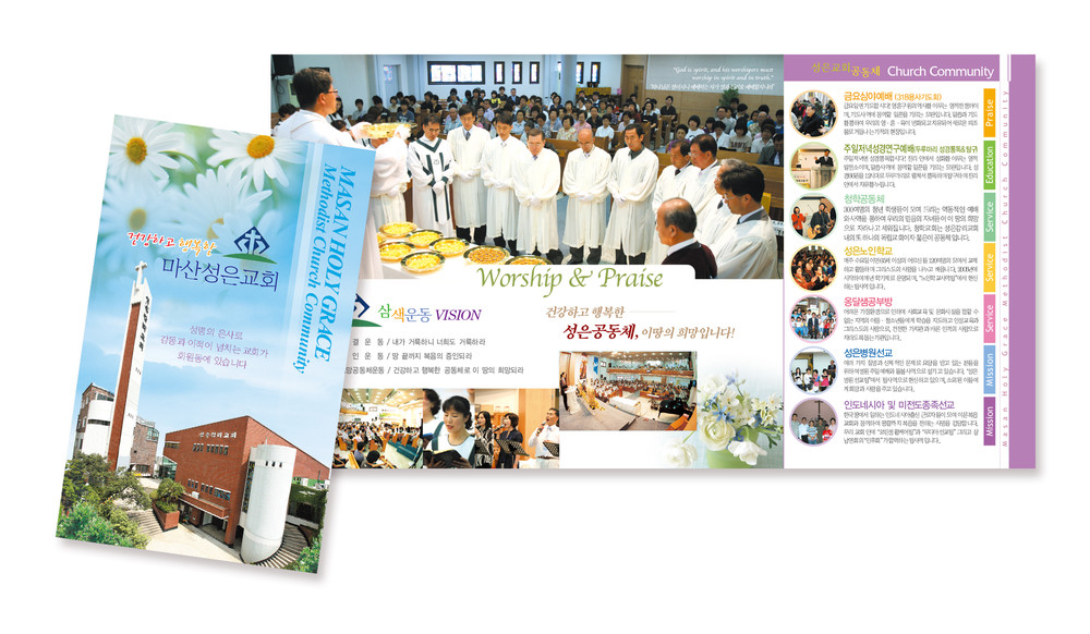 모든 교회안내 디자인은 원하시는 사이즈에 맞추어 제작이 가능합니다. (책자형, 8면, 6면, 4면 등)